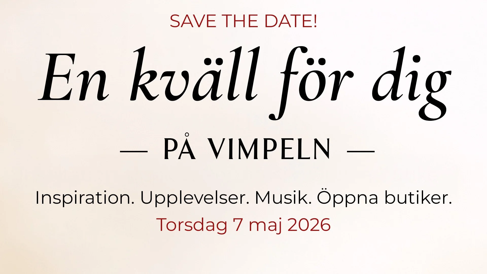 Välkommen till En kväll för dig – på Vimpeln – en inspirationsfylld kväll där du kan landa efter jobbet, upptäcka nya idéer och njuta av stämningen i lugn takt.