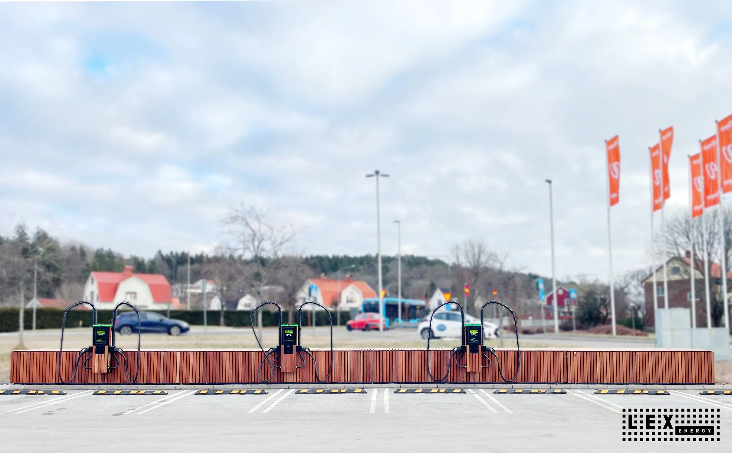På vår stora parkering hittar du 6 expressladdare från LexEnergy.