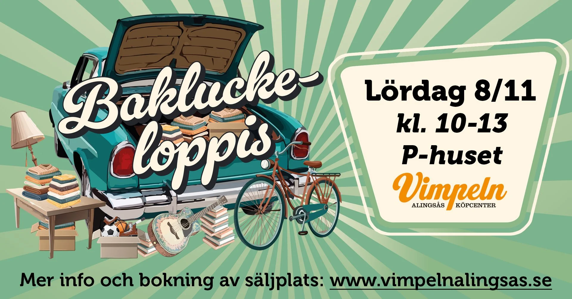 Välkommen till Vimpelns bakluckeloppis på Lördag 8/11 kl 10-13 i p-huset på plan 2.